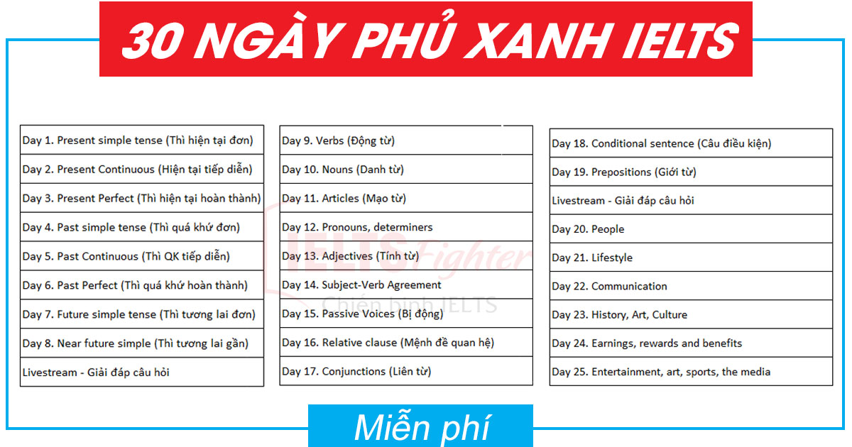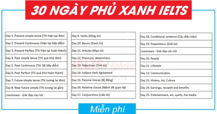 30 ngày phủ xanh IELTS – tài liệu ngữ pháp cơ bản nhất