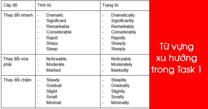 Cùng tham khảo các từ vựng chỉ xu hướng được sử dụng trong bài thi Viết nhé. Các từ vựng IELTS Writing Task 1 này rất phổ biến nên bạn cần học thuộc và luyện tập nữa nha.