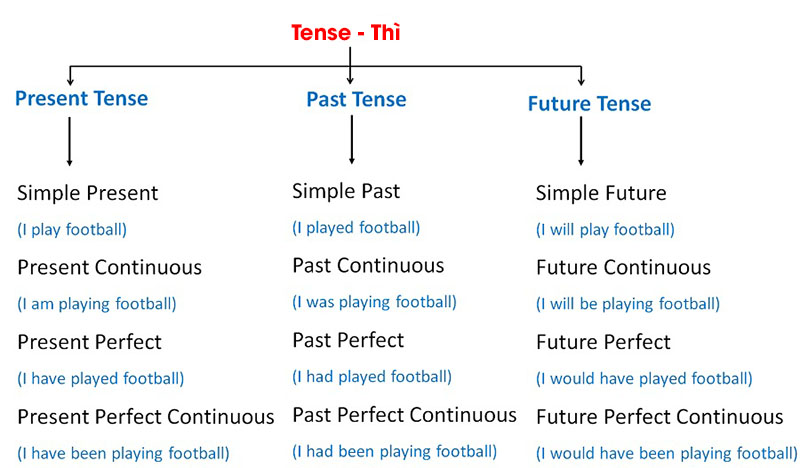 Bạn hãy tham khảo thêm các thì dưới đây để hiểu. Trong tiếng Anh có 12 thì chính và một thì phụ đó là tương lai gần.